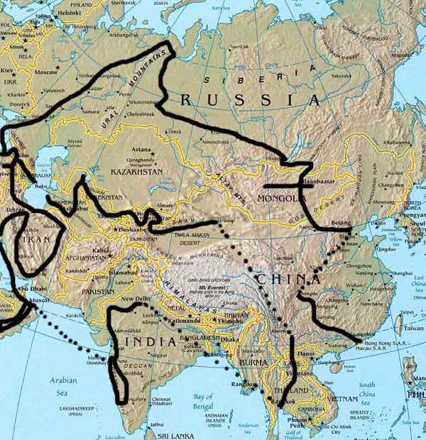 China, Laos, Thailand,