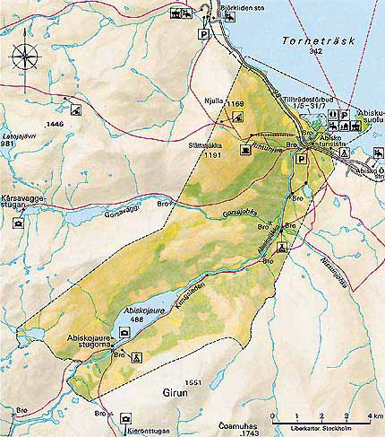 - Kebnekaise bergstation : 196 bedden, restaurant, shop, bakkerij, verhuur van outdoor materiaal, sauna, berggidsen, cursussen bergbeklimmen, geleide wandelingen op de gletcher, reserveren per email kan. Om met openbaar vervoer in Kebnekaise te geraken, neem je de bus van Kiruna naar Nikkaluokta, vanwaar het nog 19 km wandelen is naar de Kebnekaise berghut. In de zomer is het mogelijk een deel daarvan met toeristische boot te doen, in de winter op ski's (langlauf) of met sneeuwscooter. De Kebnekaise berg zelf kun je via twee routes beklimmen, voor de lichte is geen gids nodig, voor de moeilijke route wel.