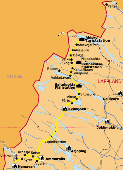 - Proviand - bevoorrading : Kaitumjaure, Kebnekaise, Saltoluokta, Vakkotavare (geen bevoorrading in Singi)