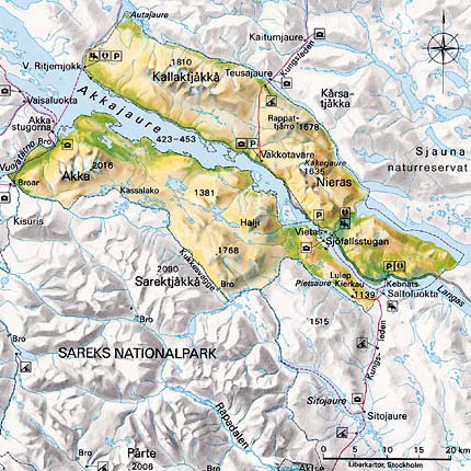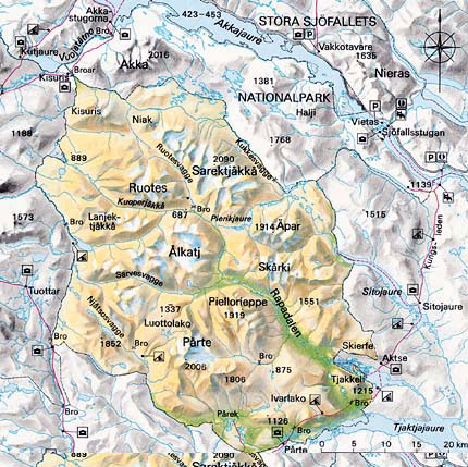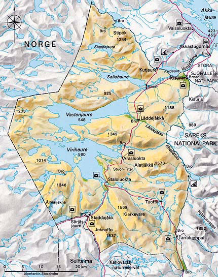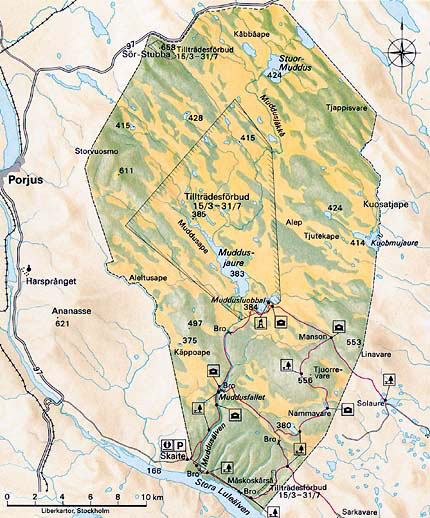 - Saltoluokta bergstation : 100 bedden, dubbele kamers, vierpersoonskamers en dormitories, gezellig restaurant, winkel, verhuring van bergsport materiaal, berggids, keuken, sauna, boottours, vissen, volksmuziek week. Reserveren per email kan. Je geraakt er met openbaar vervoer als volgt : trein of vlucht naar Gällivare, dan bus naar Kebnats, dan nog 3 km die in de zomer met boot kunnen gedaan worden en in de winter met ski op een ijspad.