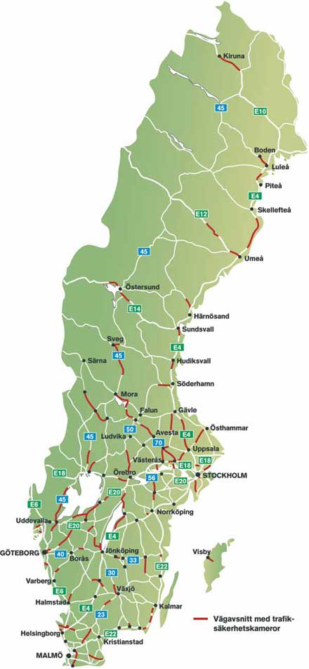duizenden camera's over heel Zweden te plaatsen om de snelheid van auto's